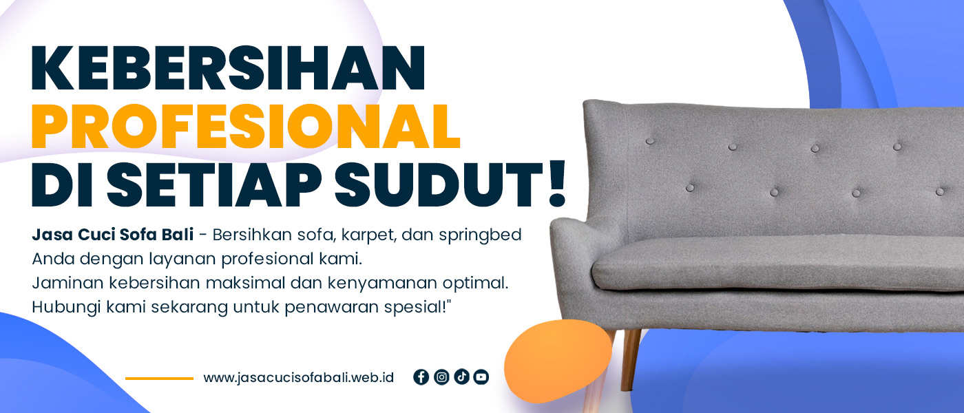 Jasa Cuci Sofa Bali adalah solusi terbaik untuk kebutuhan pembersihan menyeluruh di Bali. Dengan layanan yang mencakup cuci sofa, springbed, kursi kantor, karpet, jok mobil, dan general cleaning, serta dukungan teknologi modern dan bahan pembersih ramah lingkungan, kami berkomitmen untuk menghadirkan kebersihan dan kenyamanan maksimal. Tim profesional kami siap memberikan layanan yang cepat, ramah, dan berkualitas tinggi, menjadikan Jasa Cuci Sofa Bali pilihan terpercaya untuk lingkungan yang lebih bersih dan sehat.